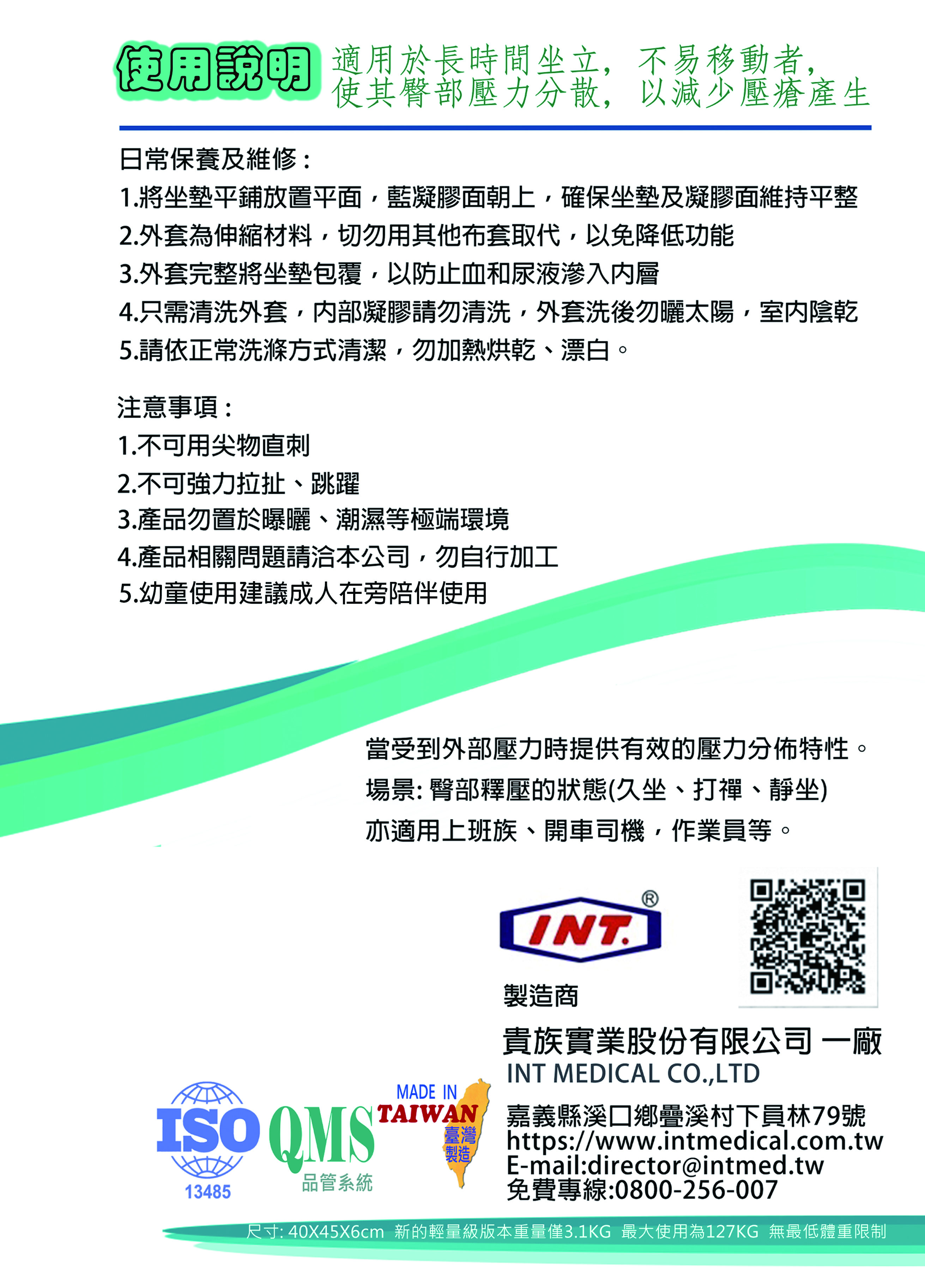 凝膠坐墊是一個貼近人心產品,提供優秀減壓模組,適用於 最多1-2級 階段的壓力褥瘡,外罩由雙向拉伸材質構成,能夠透氣不悶熱,凝膠坐墊又能防水、耐磨,可按照正常醫院程序洗滌,安心使用